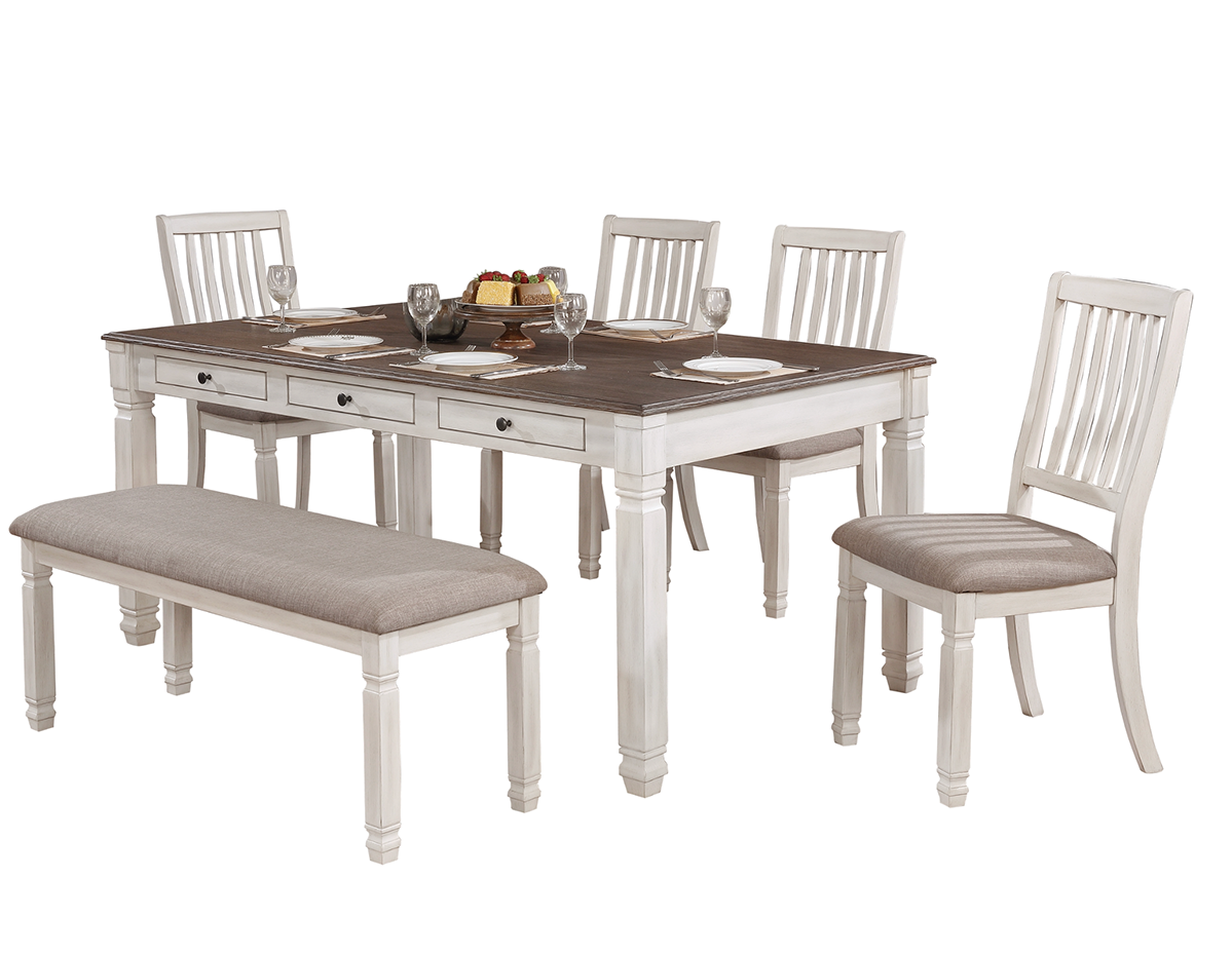 La chaleur de la campagne française rencontre la fonctionnalité suprême avec l'ensemble de salle à manger Nesbitt en noyer et blanc antique. Vous en avez assez des papiers et des appareils électroniques qui encombrent votre table à manger ? Le Nesbitt comprend 6 tiroirs à crayons pour un rangement facile.Read More