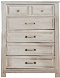La collection Darcy allie charme et fonctionnalité. Cette commode élégante comporte cinq tiroirs spacieux pour vos besoins de rangement et est finie en chêne blanc antique avec des détails d'encadrement et de belles ferrures en métal argenté brossé.Read More