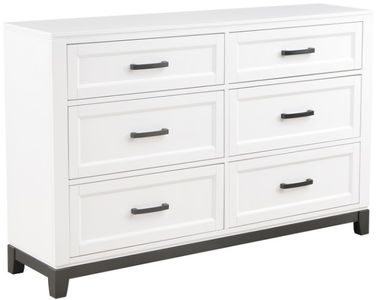 La collection Garretson allie des lignes transitionnelles à un style rustique pour créer un ajout élégant à votre chambre à coucher. La commode présente un fini blanc tandis que la quincaillerie en métal accentue les façades des tiroirs à cadre d'image de la commode.Read More
