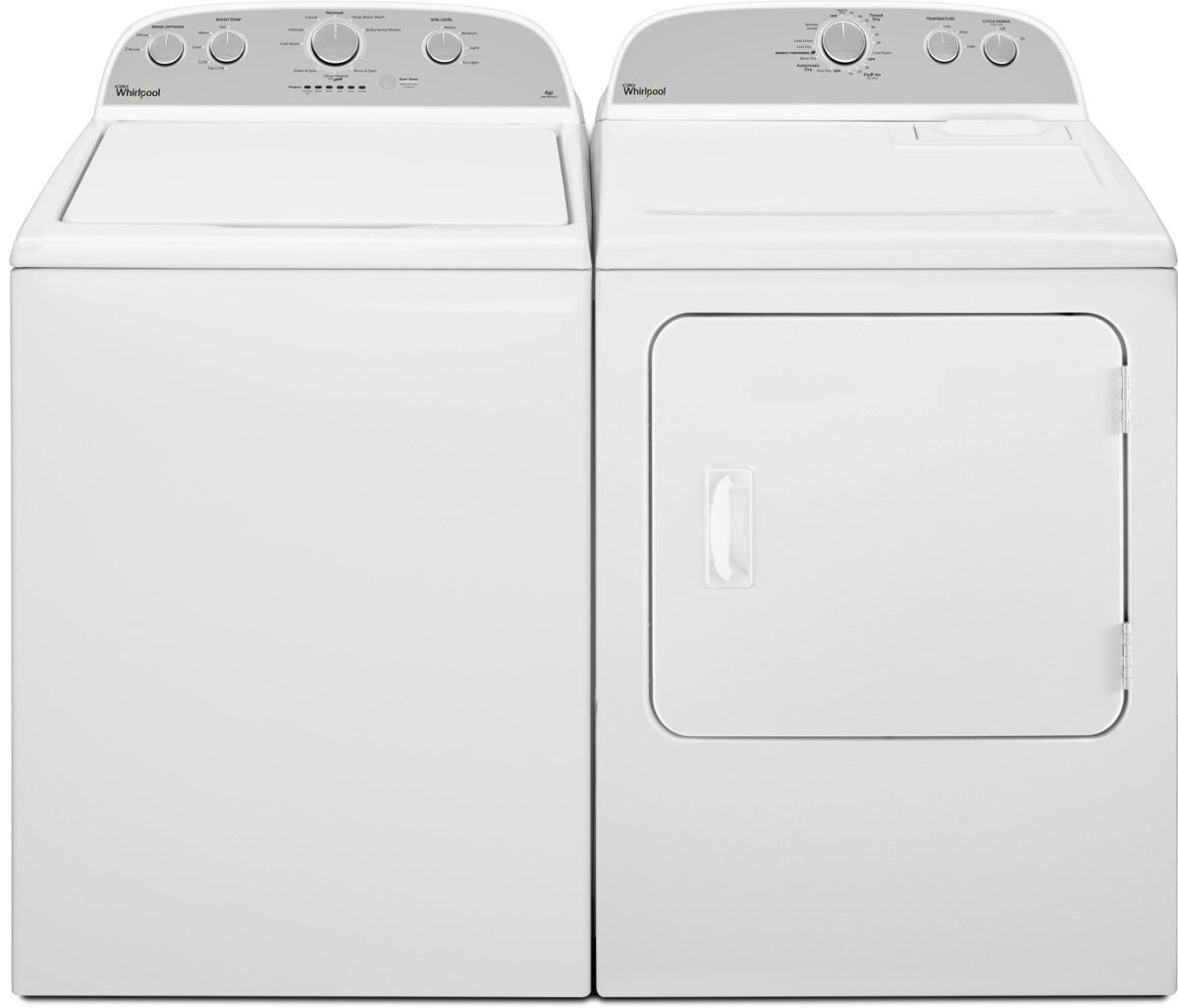 Ensemble de buanderie Whirlpool avec une laveuse à chargement vertical d'une capacité de 4.4 pi³ et une sécheuse électrique d'une capacité de 7.0 pi³.Read More
