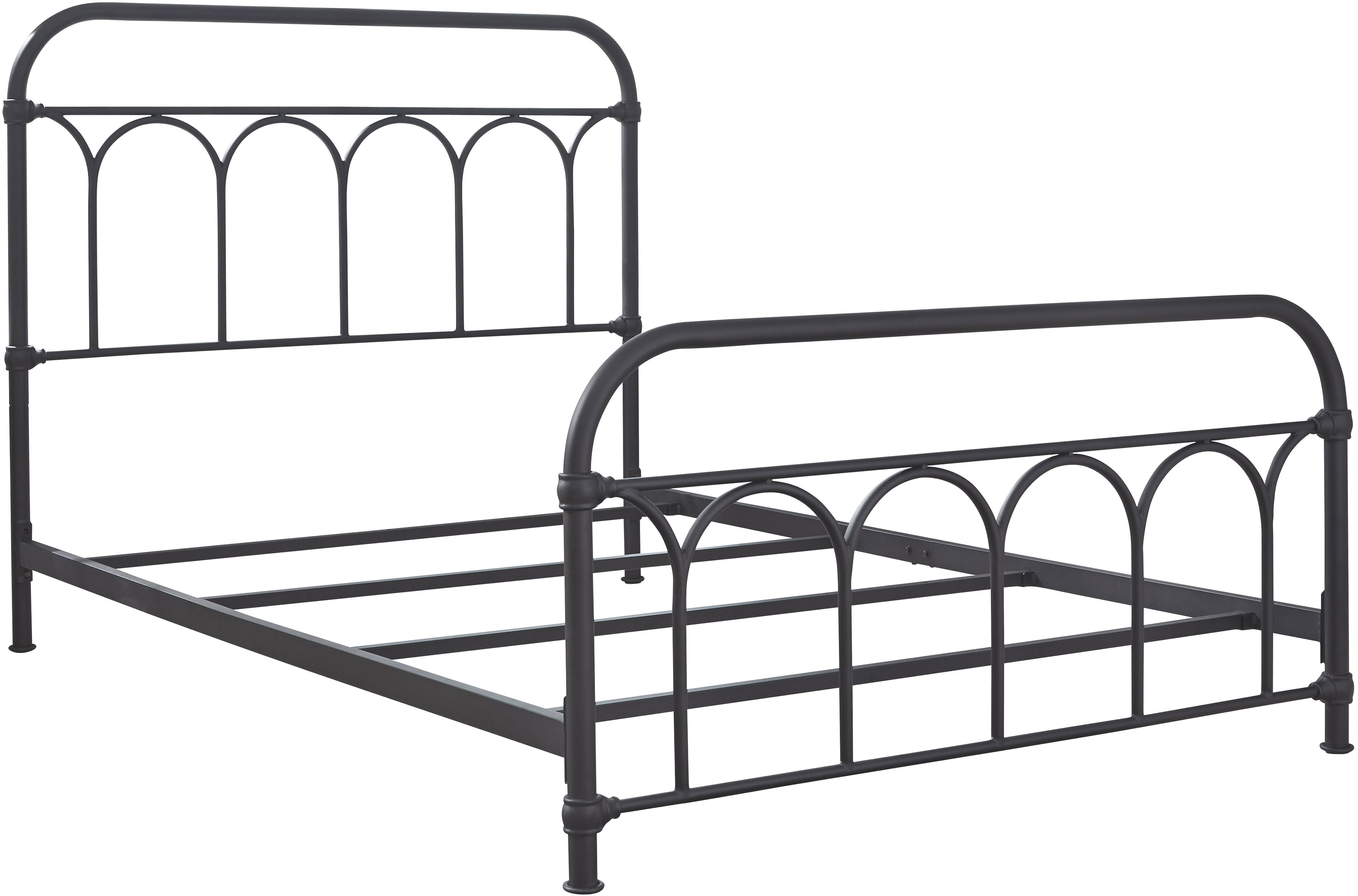 Le lit métallique complet Nashburg fait appel à du métal fini noir et à des raccords moulés pour un lit inspiré du fer forgé qui procure un charme rustique. charme.