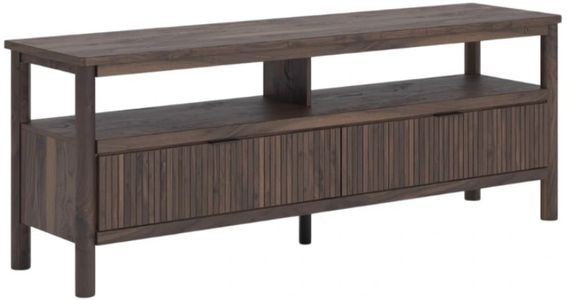 Une riche finition brune sur un grain de bois de noyer reproduit avec une touche authentique. Le meuble est rehaussé de poignées noires. Le meuble TV est doté d'un éclairage d'ambiance sous le plateau. Glissières latérales à roulettes pour un fonctionnement fluide des tiroirs. L'intérieur des tiroirs est doublé d'un motif imitation lin pour un look épuré et fini.Read More