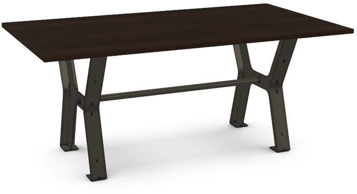Ici, et dans le moindre détail, rien ne ment. Cette table semble être récupérée d’une ancienne usine, complètement dans le ton. On aime les boulons apparents, les lignes robustes des pattes, la barre transversale typique de l’époque industrielle. On adore son format XXL conçu pour les vastes salles à manger et les espaces ouverts.